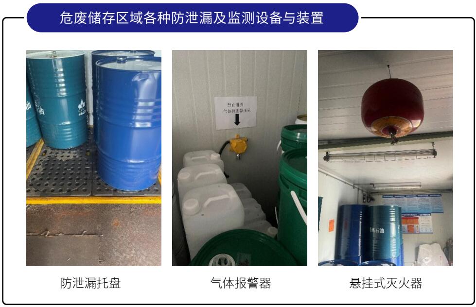 在危险化学品的储存区域均已配备各种防护、监测及防泄漏设备,例如 : 温度与湿度测量设备、有害气体探测器、静电释放器、防爆电气装置,以及洗眼器等等。为保障员工的健康与安全,我们持续向员工传达危险化学品危害信息和后续控制机制,并要求相关作业员工必须配戴公司所发放的个人防护装备。